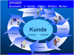 - 5 bewährte Prozess-Schritte: Die Schritte zur Erbringung der gewünschten Leistung erfolgen nach dem Stufenkonzept SPIDER und stehen Ihnen modular zur Verfügung